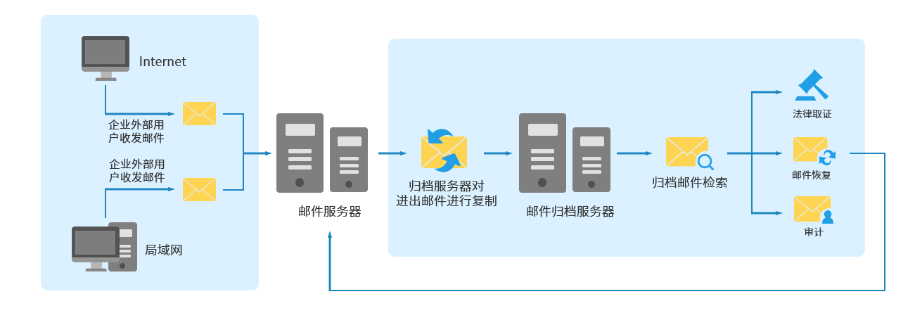 郵件歸檔系統(tǒng)可全面遵從國內(nèi)外各項(xiàng)相關(guān)政策和法規(guī)中關(guān)于郵件數(shù)據(jù)管理規(guī)范的要求,保障長期有效地對(duì)郵件數(shù)據(jù)進(jìn)行安全保護(hù)、查詢調(diào)閱、使電子郵件在企業(yè)機(jī)構(gòu)中的應(yīng)用合理合法。美國公布的塞班斯法案,要求上市公司保留所有業(yè)務(wù)記錄,包括電子記錄和郵件在內(nèi),不少于5年。2018年,公安部718會(huì)議發(fā)布的《黨政機(jī)關(guān)、事業(yè)單位和國有企業(yè)互聯(lián)網(wǎng)電子郵件系統(tǒng)安全等級(jí)保護(hù)擴(kuò)展要求》也對(duì)郵件歸檔做了詳細(xì)的要求。