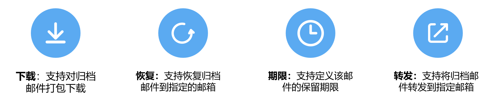 Coremail郵件歸檔模塊支持將系統(tǒng)備份的歷史郵件一鍵還原,包括對歸檔郵件打包下載、恢復郵件到指定郵箱、定義郵件的保留期限、將歸檔郵件轉發(fā)到指定郵箱等多種操作方式,保障資料交接不斷檔,業(yè)務連續(xù)不影響。