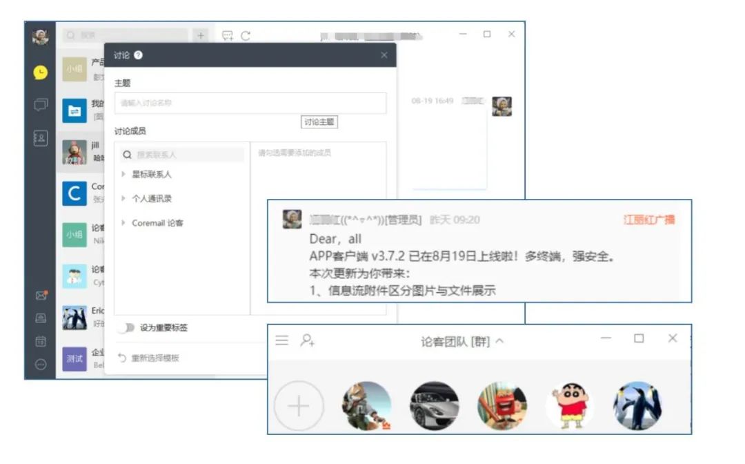 根據(jù)不同需求和不同對(duì)象,選擇多樣的會(huì)話場(chǎng)景。支持建立私聊、討論、廣播、群,匹配不同的交流模式。