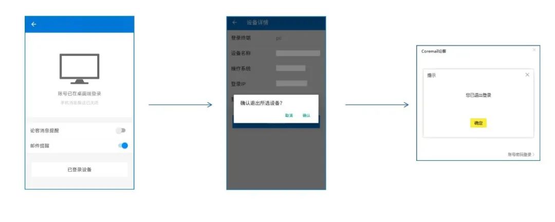 支持在移動(dòng)端上,查看其他端登錄情況,并可控制設(shè)備下線。