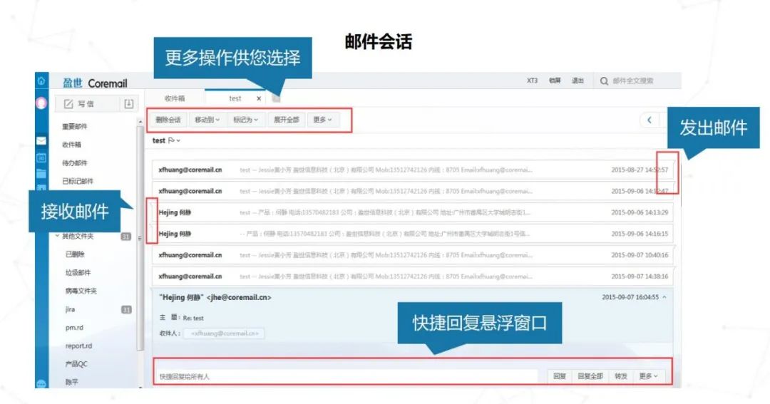 便捷工具:國(guó)際時(shí)區(qū)設(shè)置、中文郵、多套配色方案、全文搜索,賬號(hào)管理等。
