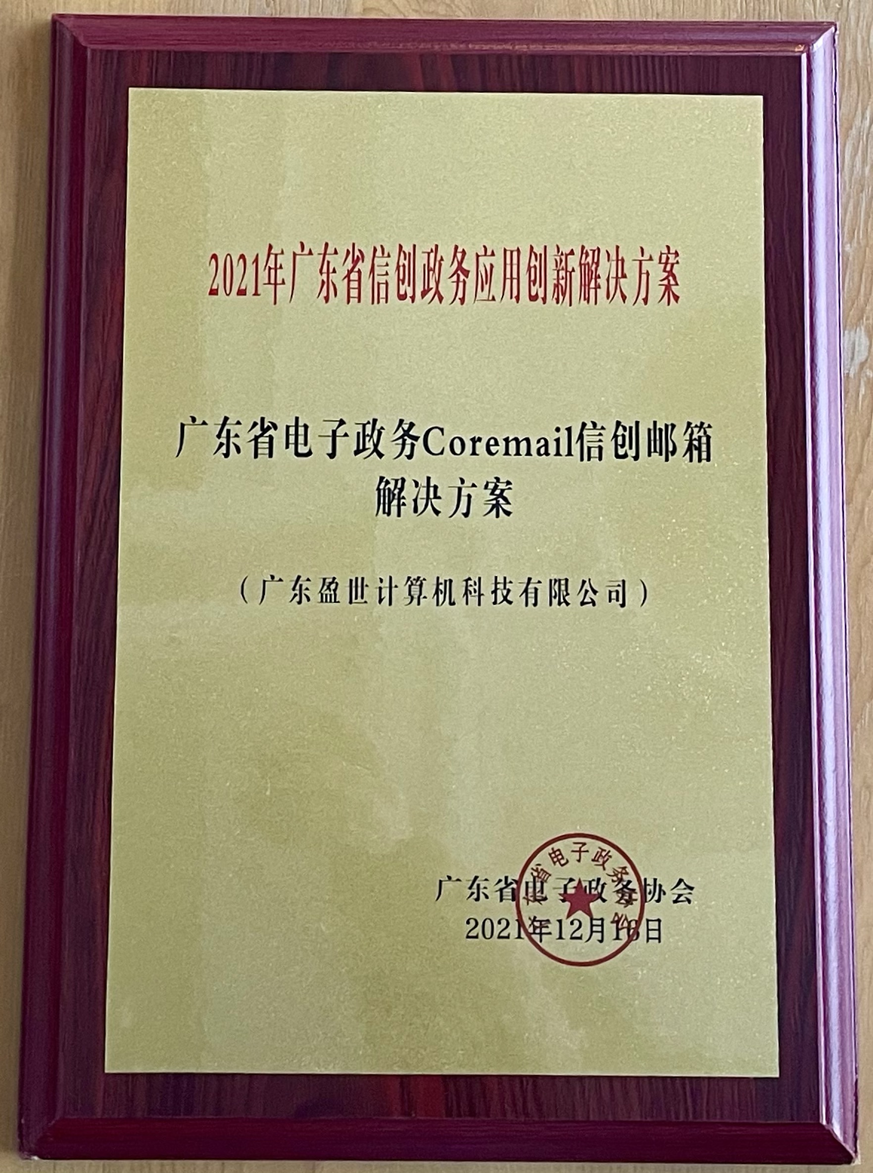 廣東盈世計算機(jī)科技有限公司應(yīng)邀出席信息技術(shù)政務(wù)應(yīng)用創(chuàng)新論壇,并榮獲2021年廣東省信創(chuàng)政務(wù)應(yīng)用創(chuàng)新解決方案獎。