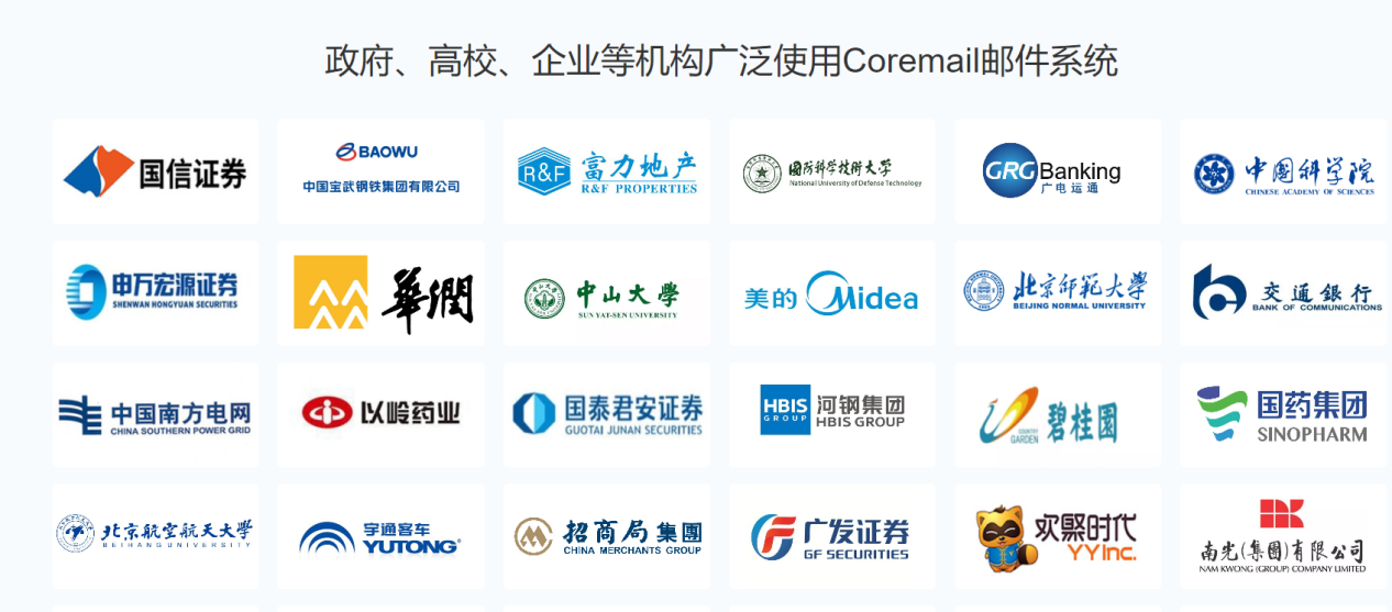 Coremail自2021年正式成立郵件安全事業(yè)部,專注于一站式解決所有郵件安全問題,產(chǎn)品涵蓋郵件安全網(wǎng)關(guān)、CAC2.0反釣魚防盜號、安全海外中繼、重保服務(wù)、反釣魚演練等。客戶涵蓋國務(wù)院新聞辦公室、國家科技部、國家財政部、中科院、清華大學(xué)、北京大學(xué)、人民銀行、建設(shè)銀行、交通銀行、華潤集團、南方電網(wǎng)、美的集團等。