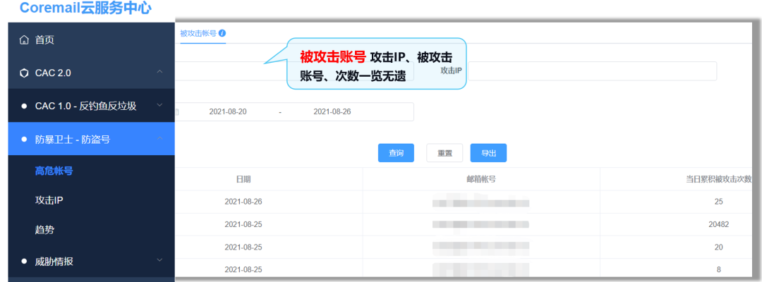 惡意郵件的精準(zhǔn)攔截離不開CAC大數(shù)據(jù)中心的支撐,作為國(guó)內(nèi)最大的反垃圾數(shù)據(jù)中心,CAC每日處理30,000,000+日均反垃圾分析請(qǐng)求,日均防護(hù)250,000+客戶,日均截獲惡意郵件高達(dá)1,000,000+封,對(duì)惡意郵件的有效攔截率高達(dá)99.8%。