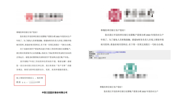 Coremail中心Q3監(jiān)測到一種新型的BEC詐騙郵件正在泛濫,詐騙團伙冒充國家各大銀行,以企業(yè)銀行賬戶年審為由,要求企業(yè)、財務(wù)和出納人員加QQ獲取年審材料。
