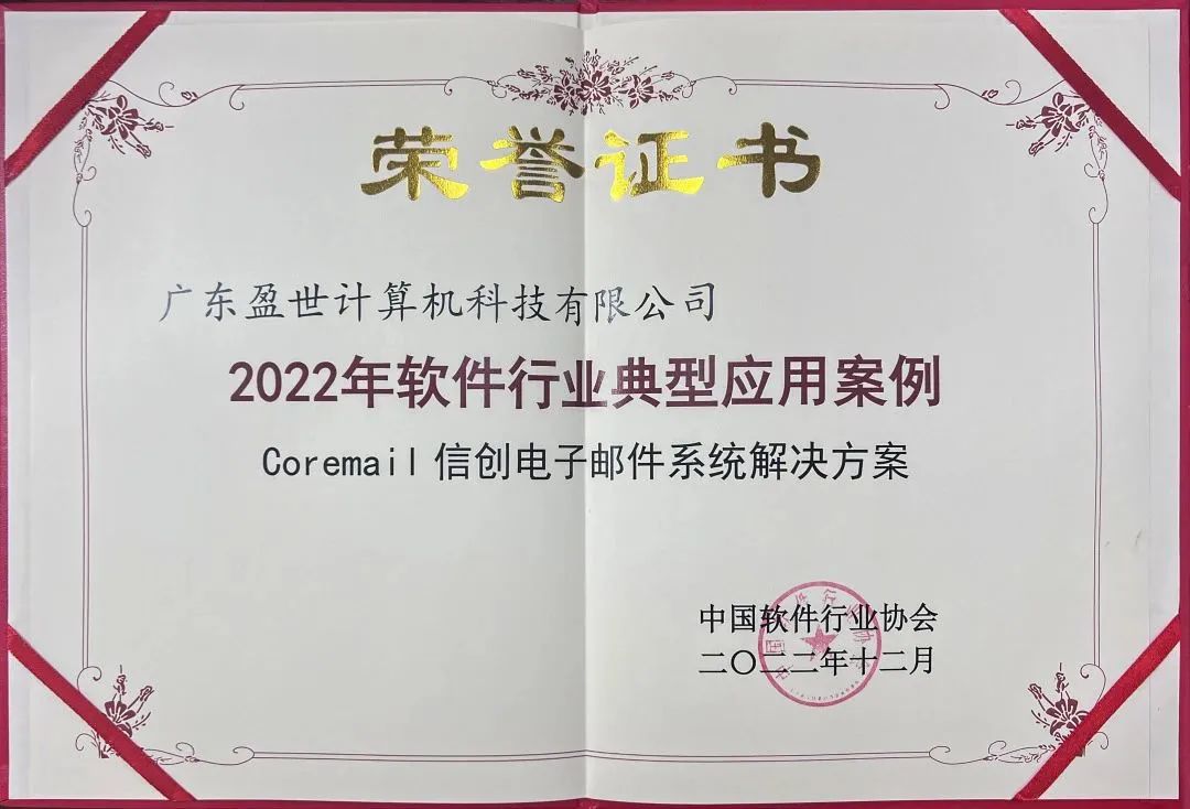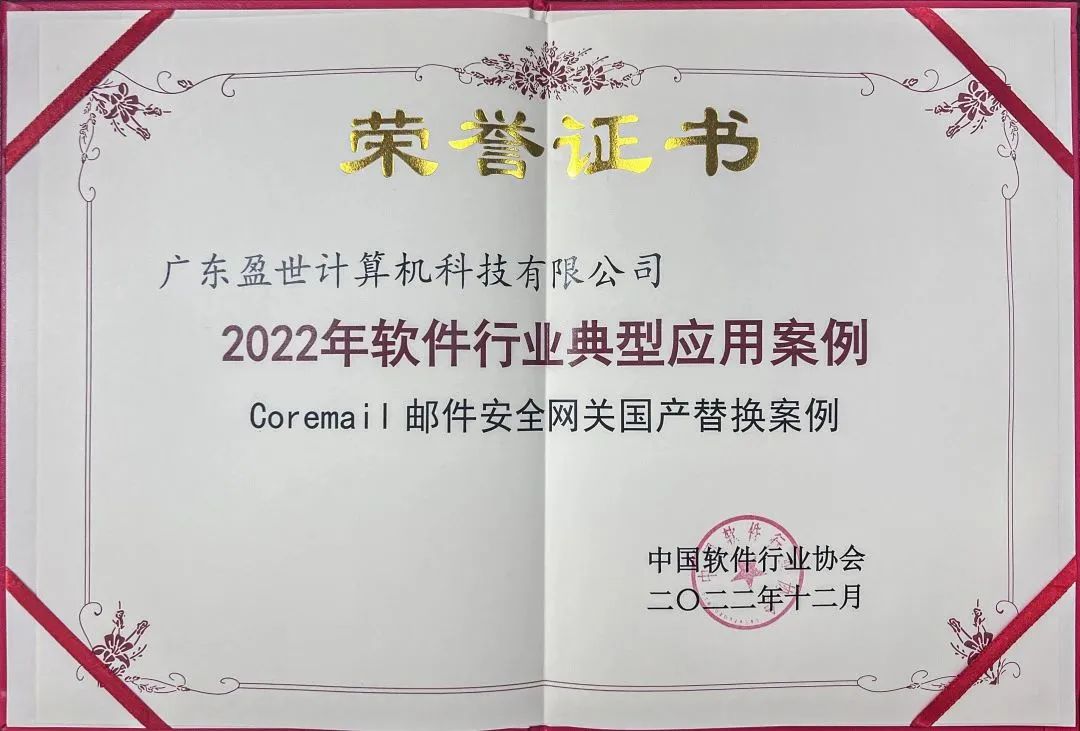 當(dāng)日,活動(dòng)現(xiàn)場公布了2022年軟件行業(yè)典型應(yīng)用案例,由廣東盈世計(jì)算機(jī)科技有限公司申報(bào)的Coremail信創(chuàng)電子郵件系統(tǒng)解決方案和Coremail郵件安全網(wǎng)關(guān)國產(chǎn)替換案例兩個(gè)方案成功入選。