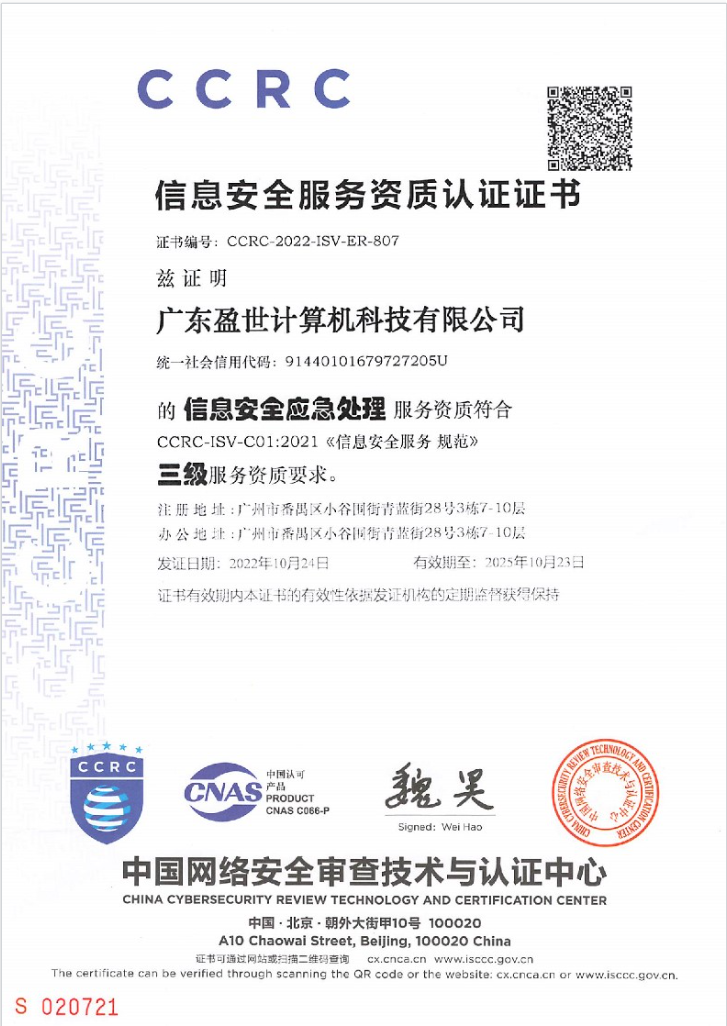 2022年7月,Coremail通過由中國網(wǎng)絡安全審查技術(shù)與認證中心頒發(fā)的CCRC信息安全服務資質(zhì)認證。