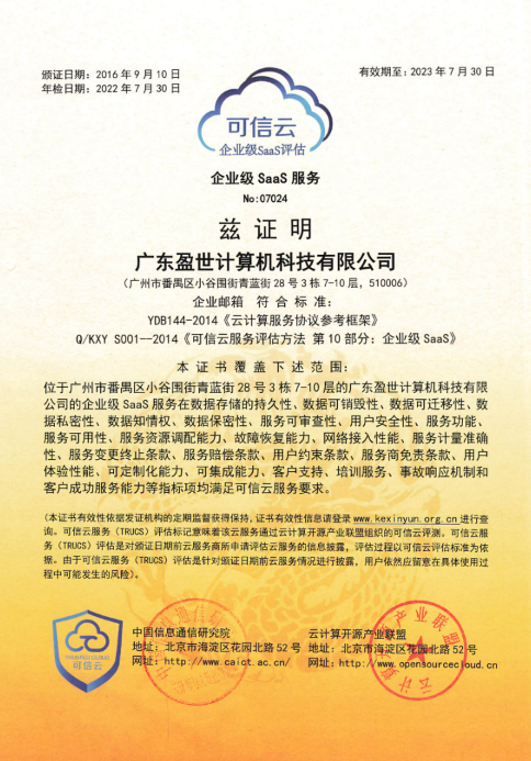 可信云認證是中國唯一的云計算權(quán)威認證體系,也是國際產(chǎn)業(yè)標準之一,它有著嚴格的評估標準,專業(yè)性強、門檻高,已成為衡量云服務技術(shù)能力和服務水平的重要標準??尚旁破髽I(yè)級SaaS服務評估從數(shù)據(jù)安全、服務質(zhì)量、運營能力、權(quán)益保障以及SaaS特有指標全面評估,幫助用戶洞察企業(yè)級SaaS服務。Coremail 2016初次通過該認證,多年來始終保持高水平運營,2022年7月無懸念通過年審。