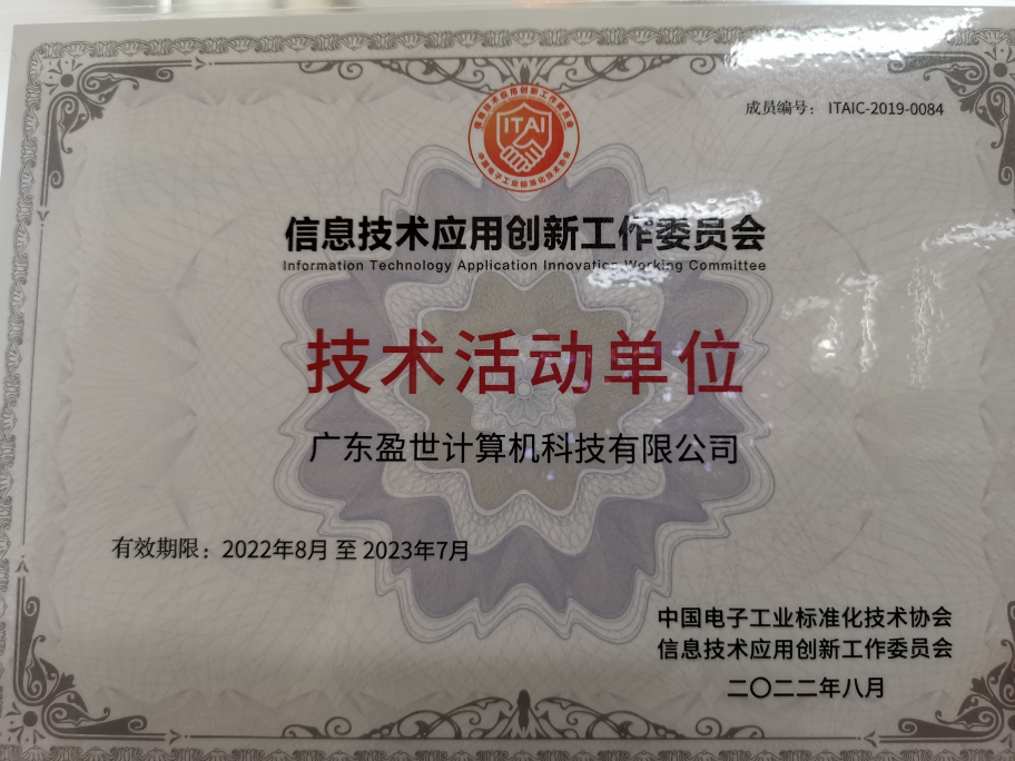 信息技術(shù)應用創(chuàng)新工作委員會的“技術(shù)活動單位”證書,主要頒發(fā)給持續(xù)技術(shù)創(chuàng)新活躍度較高的信創(chuàng)工委會成員單位,是對堅持持續(xù)創(chuàng)新類會員單位的肯定。此次成為信創(chuàng)工委會“技術(shù)活動單位”是業(yè)界對廣東盈世計算機科技有限公司信創(chuàng)工作的肯定,也是對盈世發(fā)展前景與技術(shù)實力的高度認可。