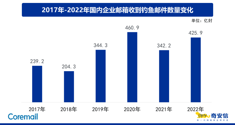 該大型啤酒廠商一直以來都非常重視企業(yè)網(wǎng)絡(luò)安全的建設(shè),在早些年就已經(jīng)采用了Cisco 的IronPort網(wǎng)關(guān)為其Exchange郵件系統(tǒng)進(jìn)行防護(hù)。但近年來,針對(duì)我國(guó)企業(yè)的威脅郵件攻擊態(tài)勢(shì)愈演愈烈,根據(jù)《2022中國(guó)企業(yè)郵箱安全性研究報(bào)告》顯示,2022年釣魚郵件約445.9億封,相比2021年增加了60.6%,平均每天約有1.2億封釣魚郵件被發(fā)出和接收。