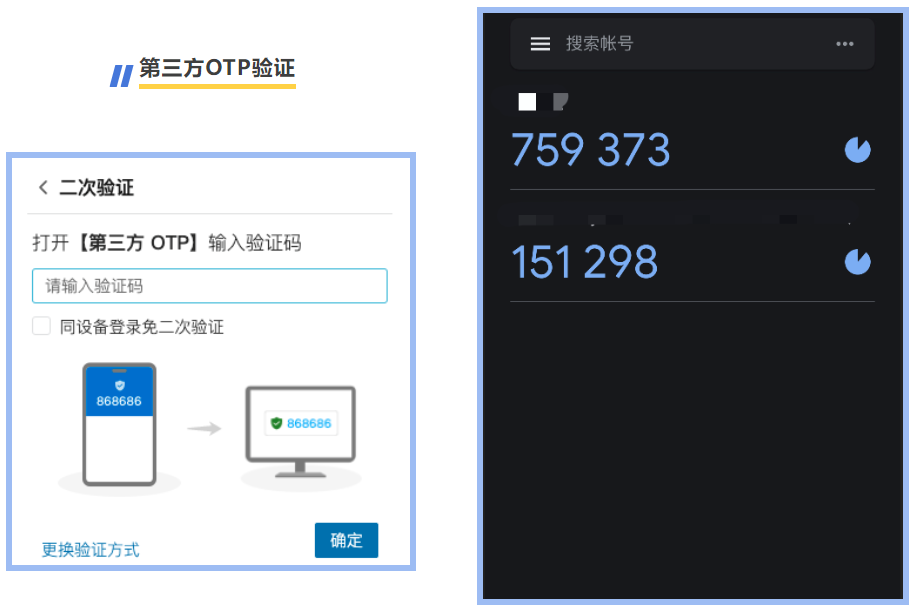 △驗(yàn)證方式選擇“第三方OTP”,打開已綁定的第三方OTP并獲取驗(yàn)證碼后,返回驗(yàn)證界面輸入即完成驗(yàn)證。