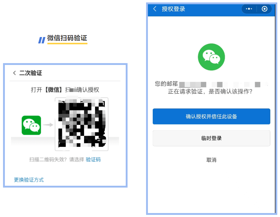 △登錄驗(yàn)證時(shí),用已綁定的微信掃碼即可完成驗(yàn)證