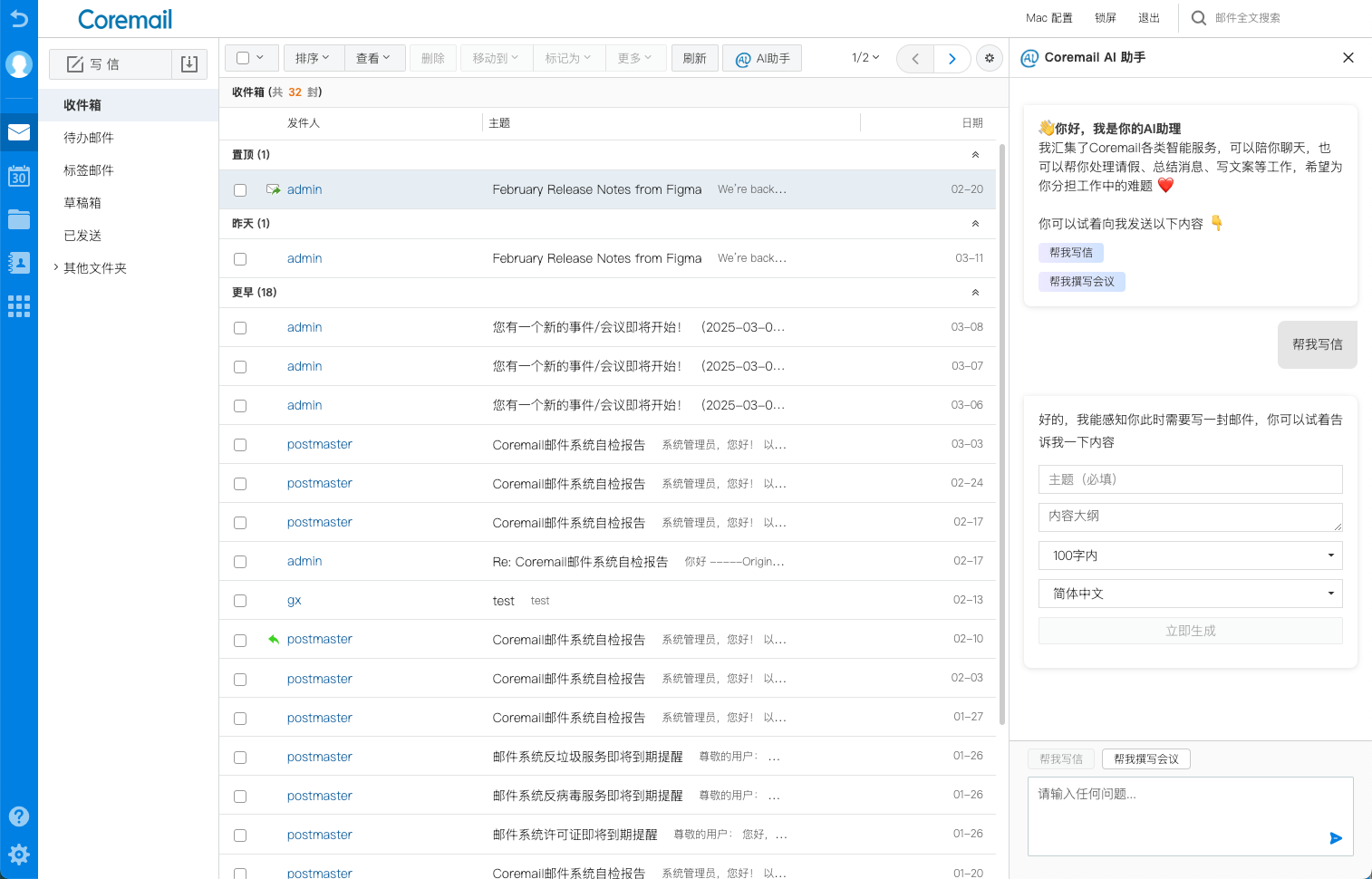 AI時(shí)代,Coremail積極投入AI+郵箱的創(chuàng)新融合,將郵箱能力解耦調(diào)用,Coremail-DeepSeek中間件整合數(shù)據(jù)資源,賦能郵箱,實(shí)現(xiàn)智能化和自動化。