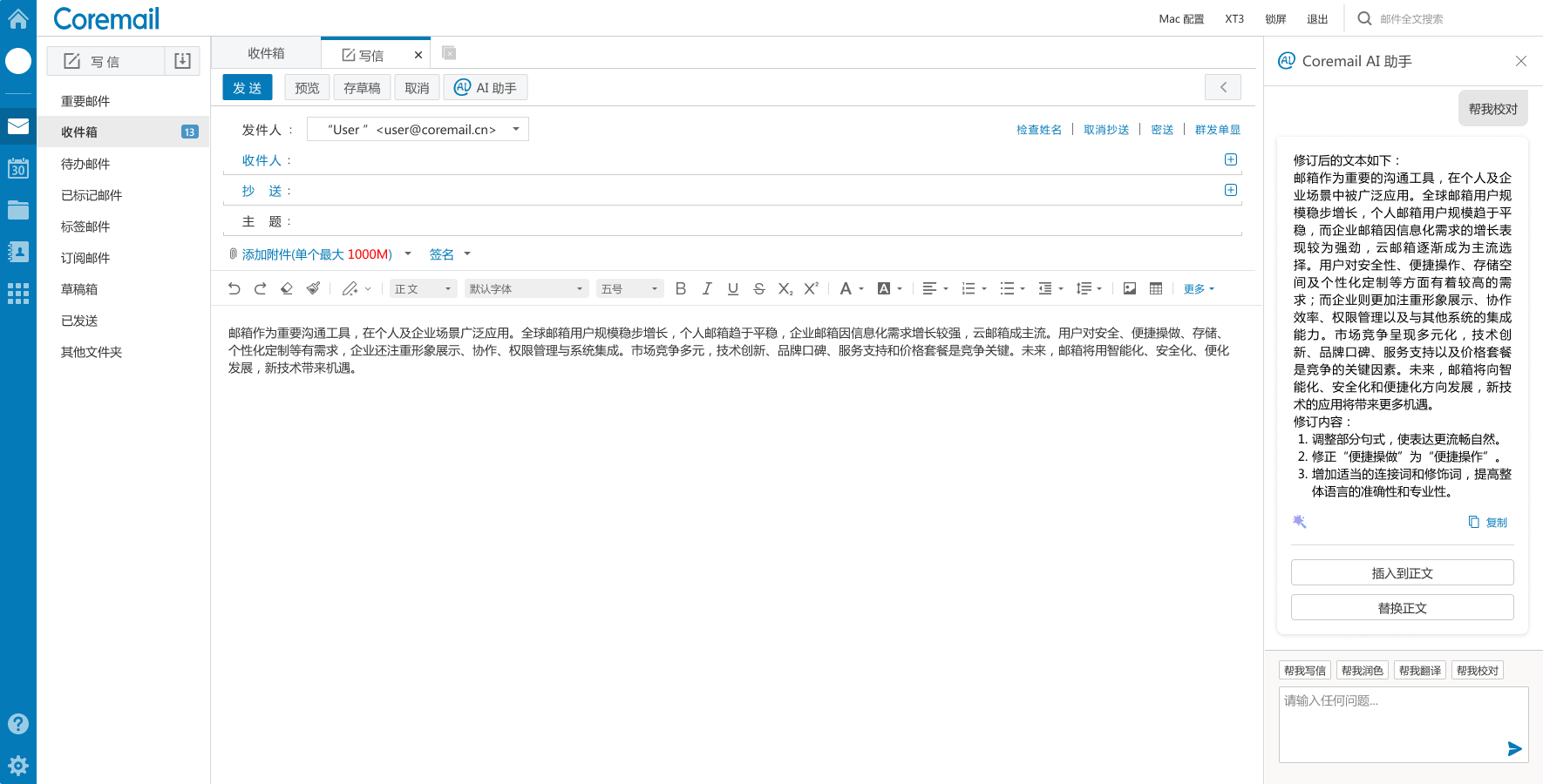 Coremail AI郵箱助手:智能撰寫,精確表達(dá),提升企業(yè)形象